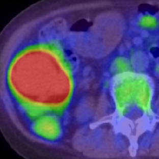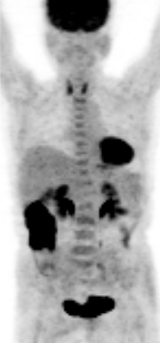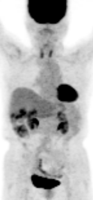 PET検査もSPECT検査と同様に様々な薬剤を用いることが出来ます。代表的なPET製剤である18F-FDGはグルコース類似物質であり、悪性腫瘍や炎症などのグルコース代謝が亢進している病変の活動性評価に用いられます。悪性腫瘍においては病期診断、治療効果判定、再発診断などで威力を発揮、心サルコイドーシスにおいても同様に病勢評価、治療効果判定が容易です。また、18F-FDG以外にも13N-NH3を用いた心筋血流イメージングやアミロイドイメージングによる認知症の診断も行っています。近年、PET検査を用いた研究は非常に盛んに行われており、今後益々の発展が期待されています。